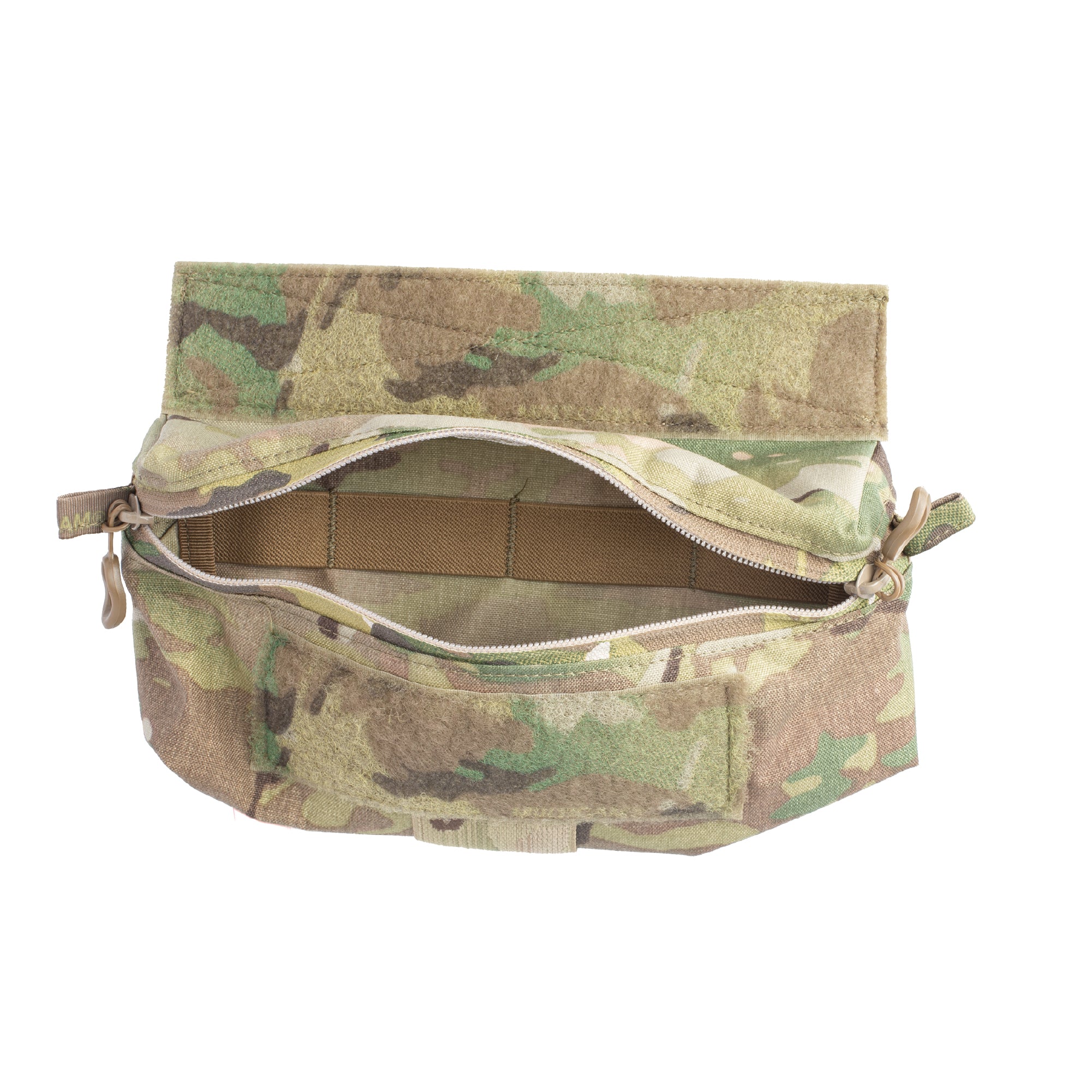A large zipper opening with dual zipper pulls allows quick and easy access to your contents. The top Velcro attachment was shortened to allow to be mounted on the Belt system but will still attach to armor carriers securely.