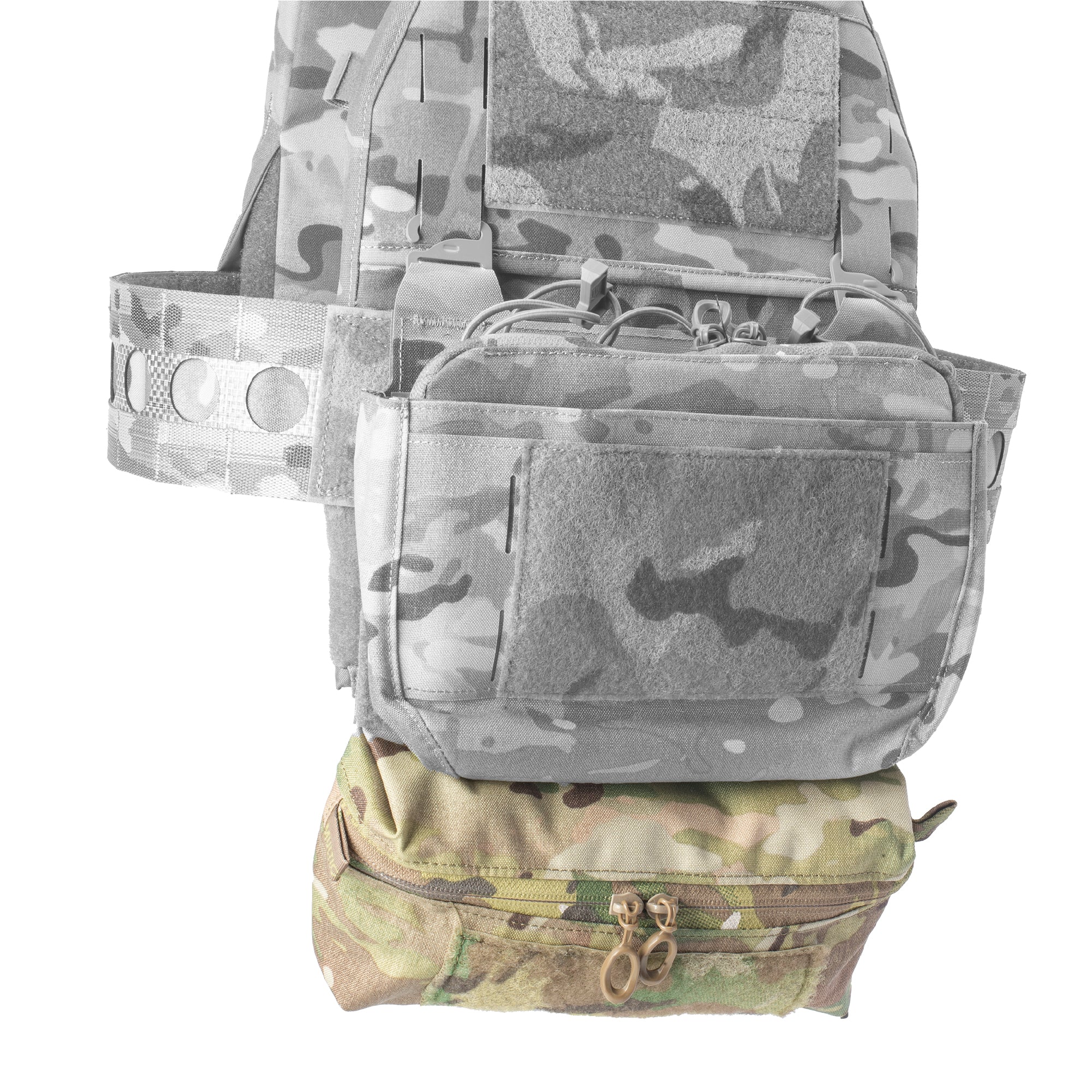 The Mini Dangler drop pouch is a lower profile version, it was designed to provide a ‘fanny pack’ add-on to your armor carrier. only a minimal amount of internal storage space is reduced but provides an overall lower profile for those seeking a more streamlined setup.
