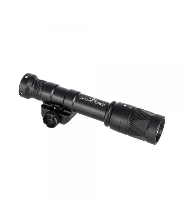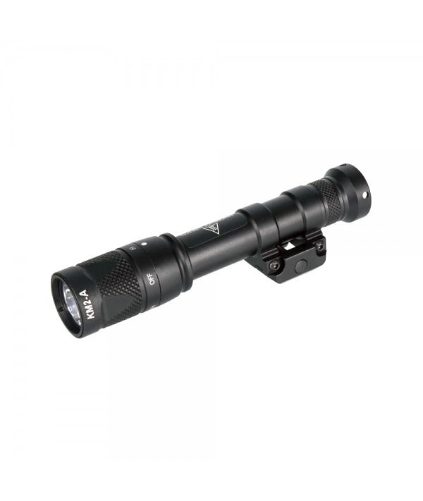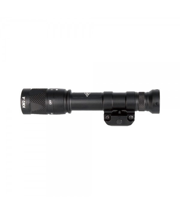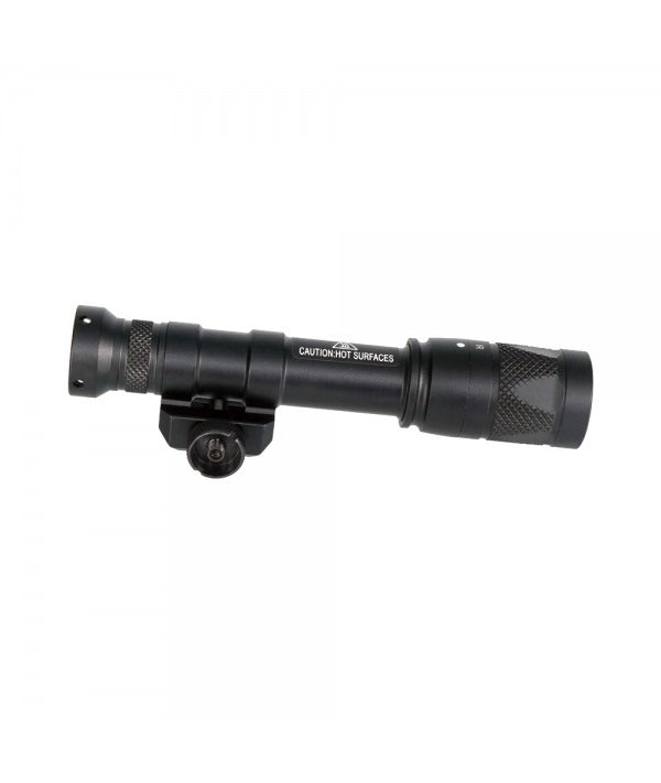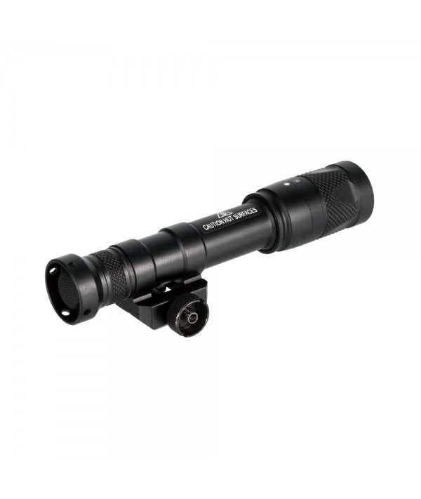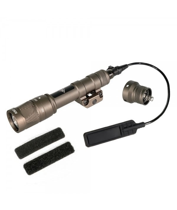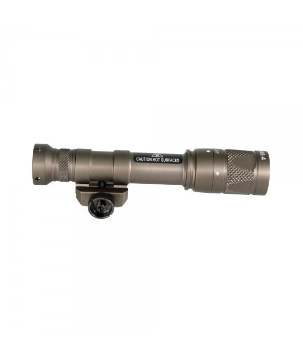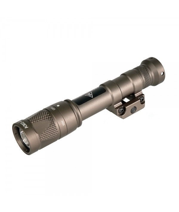 The M600V is powered by two 123A lithium batteries. It produces 350 lumens (12,750 candela) of white light and 120 mW of IR output (optional strobe while light) , and allows you to select the appropriate spectrum for the situation by simply rotating the bezel.