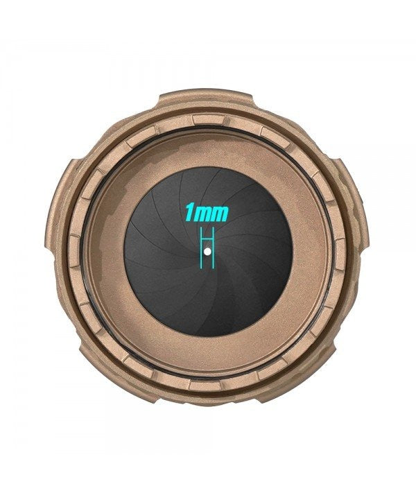 With the turn of the Infinity Cap Turret, you can adjust the from 23.5mm down to 1mm with a click-stop at 5.66mm which puts you right at infinite focus. This crucial stopping point allows users to quickly shift their iris to infinity via tactile feedback, allowing users to easily identify what's in front of them with full clarity. If lighting does not permit infinity focus, the user can gradually adjust open or open it all the way quickly if lighting conditions change rapidly. Our iris system gives you the perfect balance of adjustability and utility.