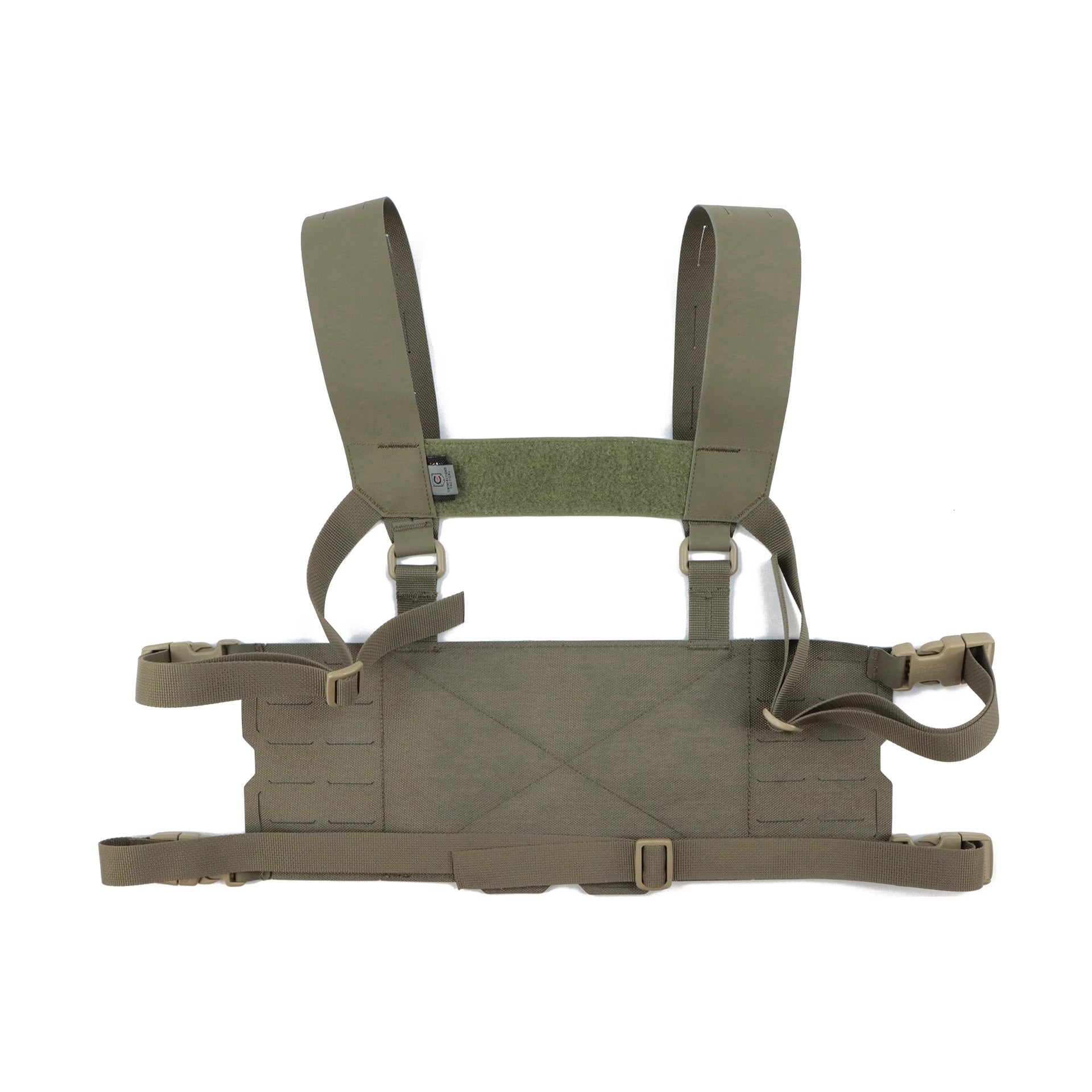 The Chesty Rig Wide Harness offers compatibility with front flaps as well as two columns of MOLLE on each side of the front flap. Front flaps can be quickly interchanged between the Chesty Rig, Slickster, as well as the FCPC V5.