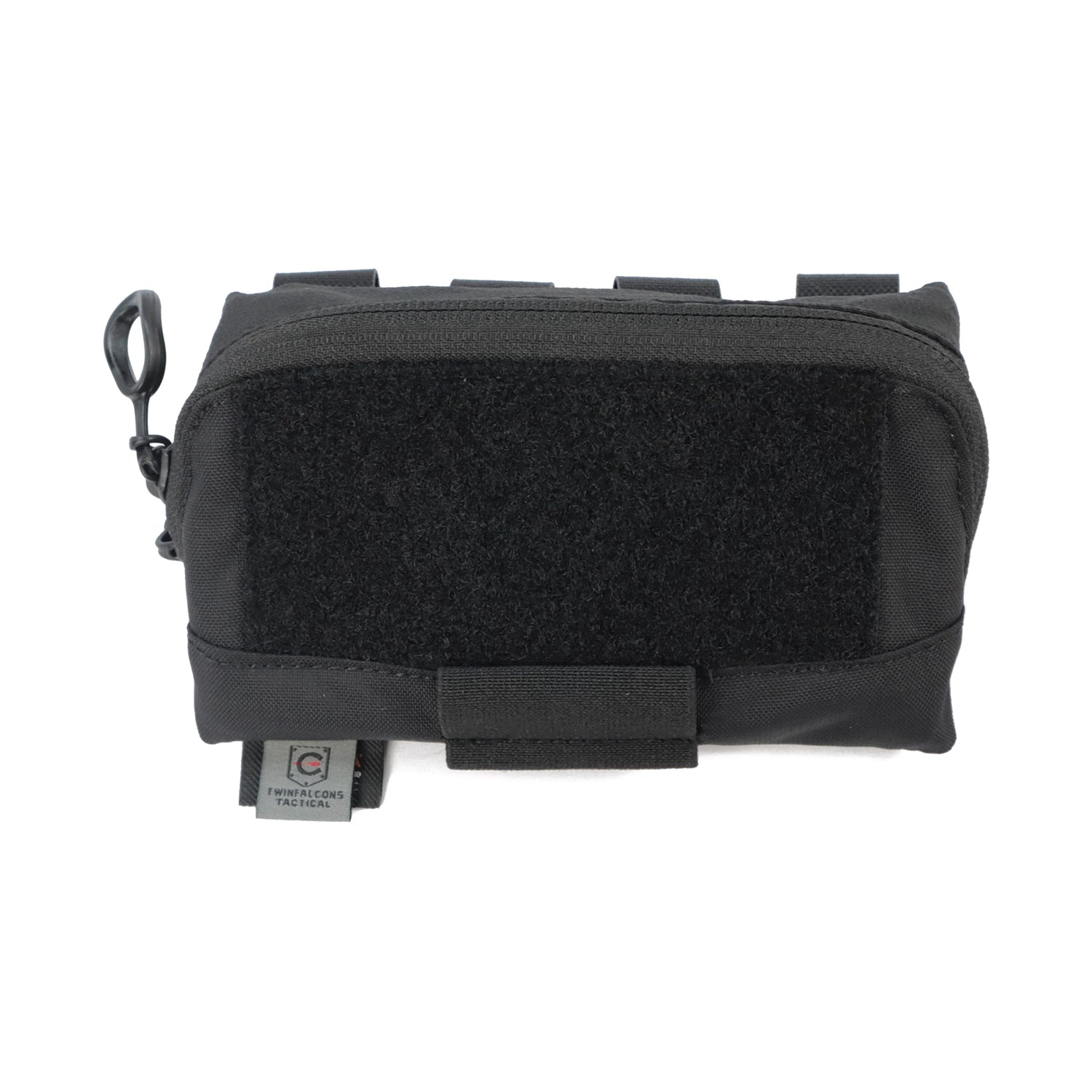 Compatible with all MOLLE with at least 2 rows high and 4 columns wide, ambidextrous zipper opening, loop velcro for callsign patches.