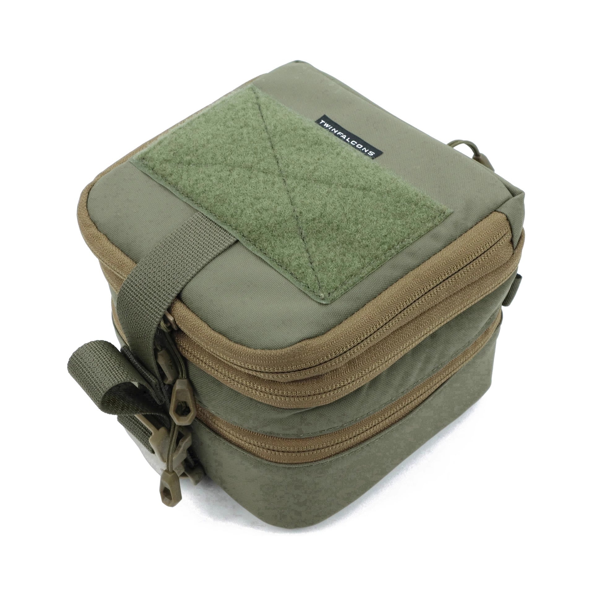 The Pouch also has a large Velcro loop panel on the lid, allowing ID/Callsign patches or placards to be placed on the pouch to identify individual pouches, as well as a rapid closure/compression/cinch strap with a Fastex buckle
