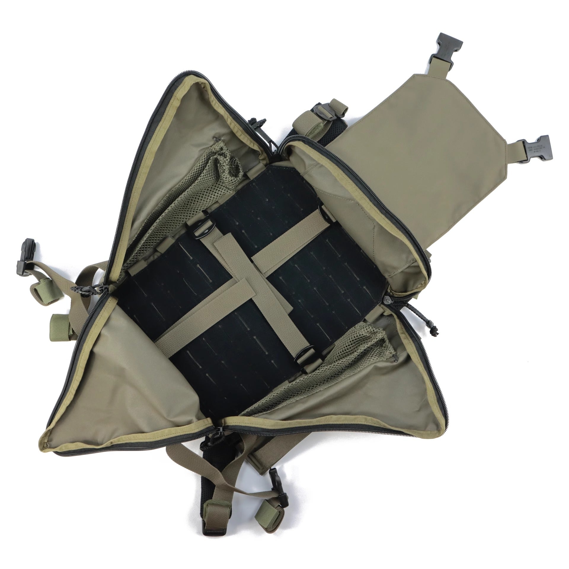 Constructed with durability in mind, the Scavenger Bag is crafted from high-quality 500D material and laminate, ensuring its ability to withstand the toughest conditions and provide long-lasting performance. The bag features laser-cut MOLLE panels on the inside of the back wall and sides, providing a secure and customizable attachment system for your pouches and accessories.